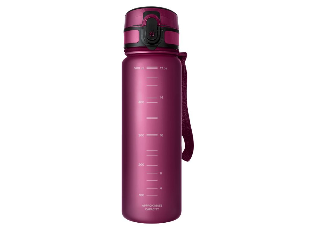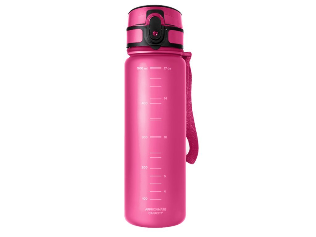 Povrch fľaše je pokrytý matným, sametovým poťahom, ktorý je príjemný na dotyk a znižuje riziko vykĺznutia, aj keď máte mokré ruky. Má značenie objemu v mililitroch a unciach, čo uľahčuje sledovanie denného príjmu vody. Fľaša je naviac vybavená praktickým širokým popruhom, ktorý uľahčuje držanie fľaše a zaisťuje bezpečnú manipuláciu. Špeciálny uzáver bráni nechcenému otvoreniu a rozliatiu vody.