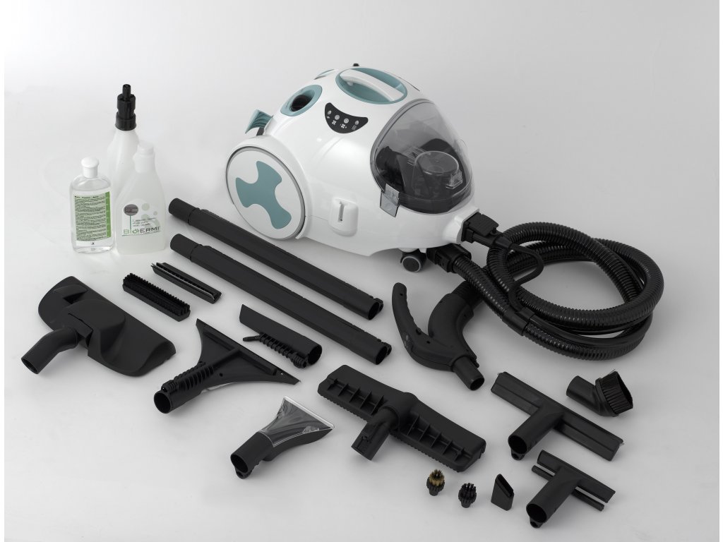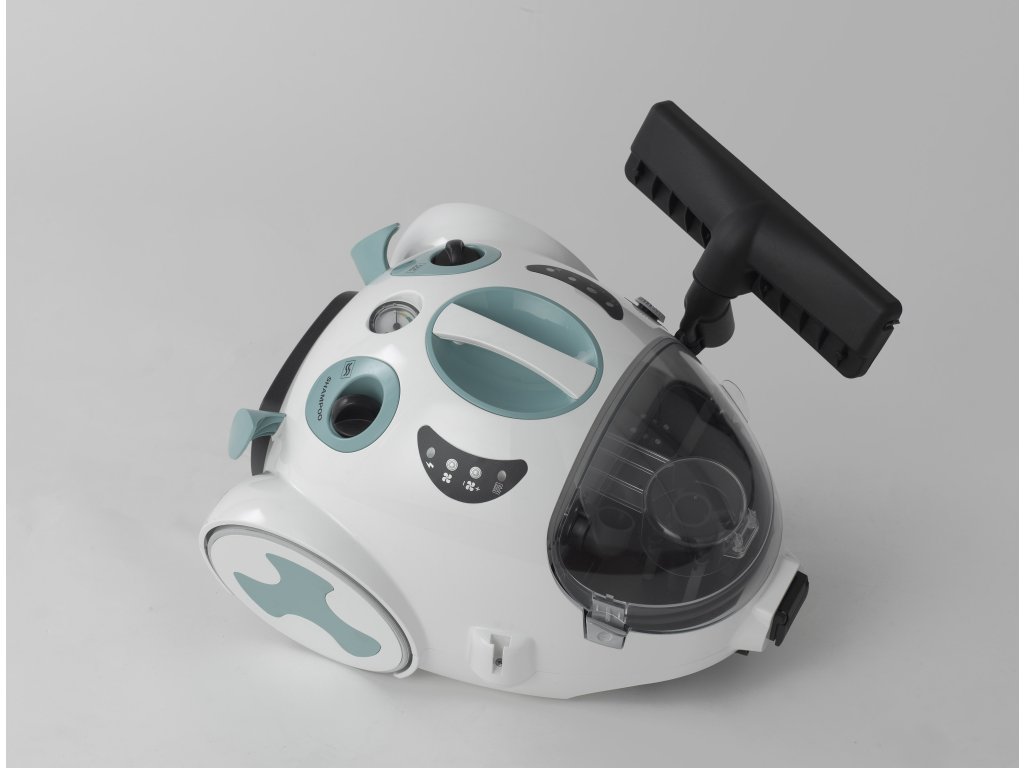 Parný čistič s vysávaním a pristrekom detergentu - ekologického čistiaceho prostriedku ( ideálny na veľmi znečistené miesta) môžete použiť len ako parný čistič bez vysávania alebo s vysávaním. Je ideálny na čistenie poťahov, kobercov, podláh, atď., kde uvoľnené nečistoty môžete hneď vysať do sucha alebo len ako samotný vysávač bez pary. Nečistoty sa vysávajú do nádrže s vodou so špeciálny výrom, takže sa zachytí aj najmenší prach.