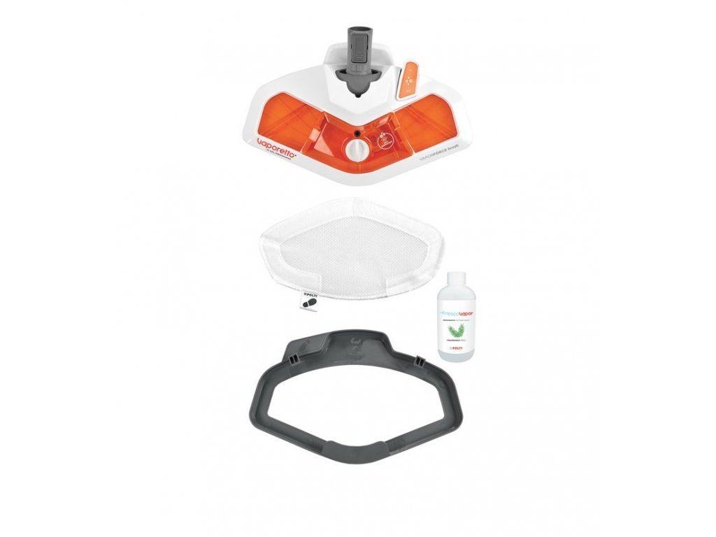 Parný mop Polti Vaporetto SV420 Frescovapor v sebe kombinuje parný mop a osviežovač vzduchu. Vďaka integrovanému aróma dávkovaču v kefe Vaporforce jedným ťahom vyčistíte a prevoniate celý Váš domov. Upratovanie s ním zvládne úplne každý – je ľahučký, kompaktný, má flexibilný nástavec a elegantne tvarovanú kefu, pomocou ktorej vyčistíte aj ťažko dostupné miesta pohodlne a bez obtiaži. Horúca para je vysoko účinná, preto po každom prechode s týmto prístrojom za sebou zanecháte perfektne čistý a novo vyzerajúci povrch. Nahrieva sa len 15 sekúnd, preto je vhodný pre každodenné, rýchle upratovanie. Môžete ho použiť na všetky druhy podláh: mramor, parkety, terakotovú a inú dlažbu, koberce a iné.