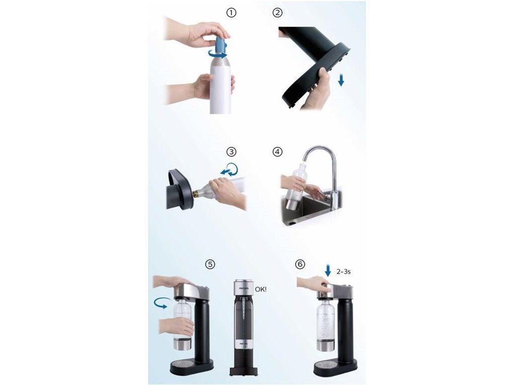 Vďaka jednoduchému trojkrokovému procesu môžete ľahko nastaviť úroveň sýtenia podľa svojích preferencií a vytvoriť tak nápoj s presne takým množstvom bubliniek, aké máte radi.