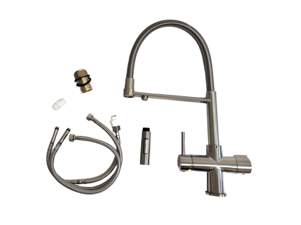 Filtrovaná voda je vedená oddeleným potrubím, ktoré nie je prepojené s rozvodom vodovodnej vody, čím je zaistená maximálna čistota filtrovanej vody.