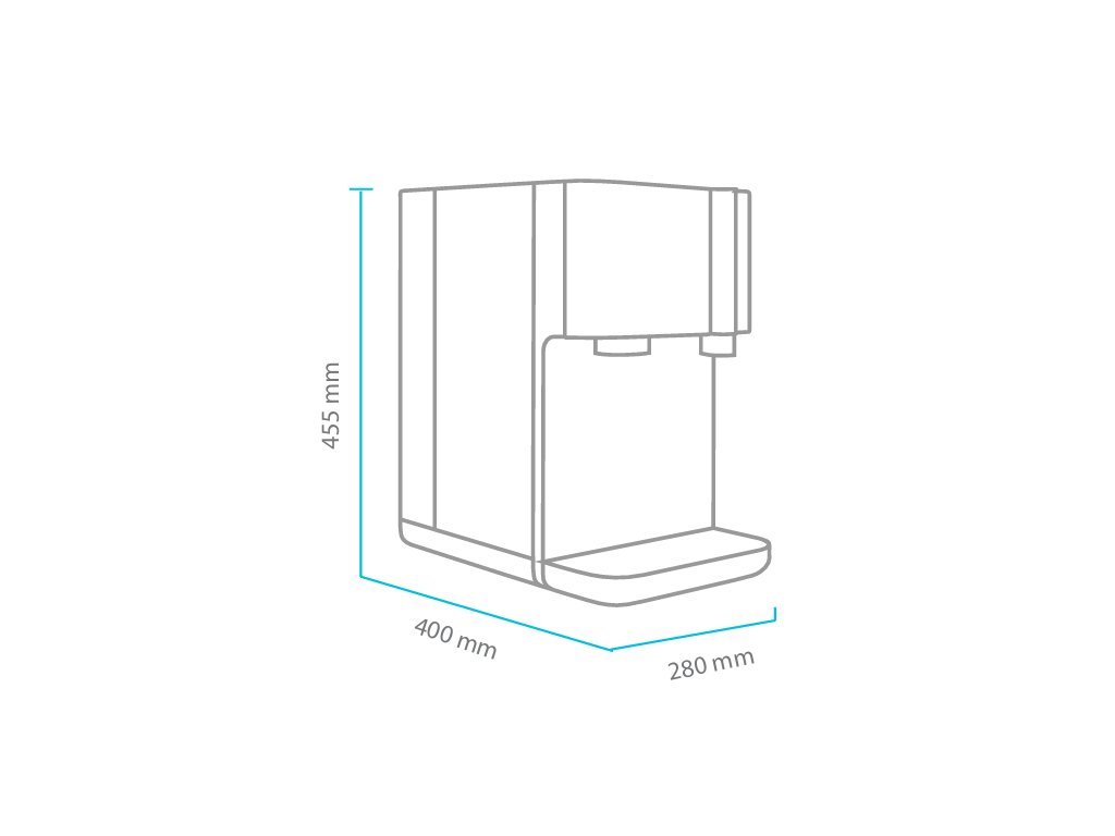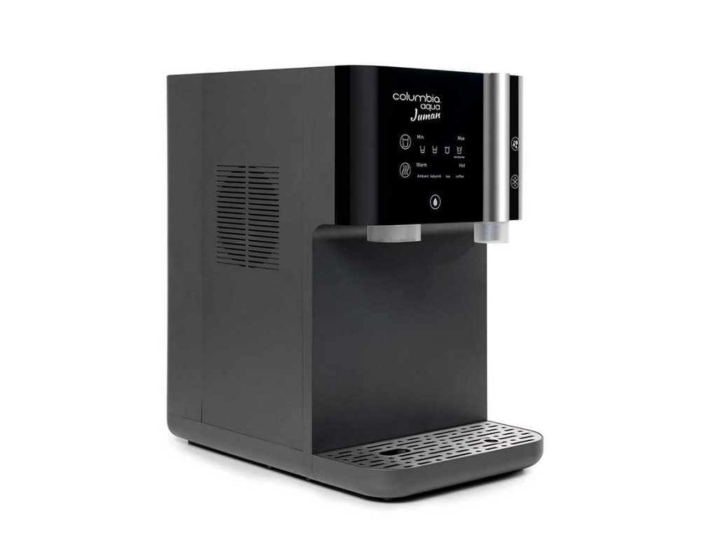 Dotykový ovládací panel zaisťuje jednoduchú obsluhu vrátane nastavenia teploty a objemu vody. Medzi bezpečnostnými prvkami patrí detská poistka pri odbere horúcej vody a senzor úniku vody. Výdajník je vybavený automatickým preplachom RO membrány pre dlhšiu životnosť a stabilnú kvalitu vody. Výrobný výkon je až 15 l/h pitnej vody s osmotickou úpravou, čo zaisťuje dostatočnú kapacitu aj pre náročnejšiu prevádzku.