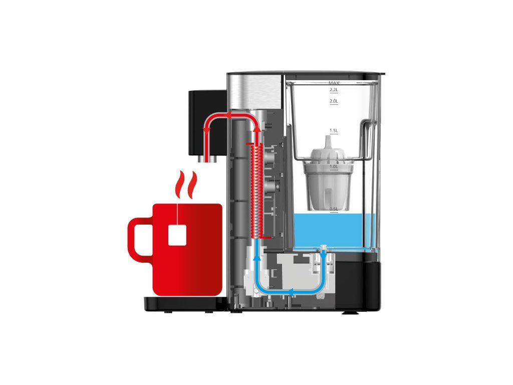 Ponúka rýchlu prípravu čerstvej horúcej vody počas niekoľkých sekúnd a umožňuje nastavenie troch rôzných teplôt, vhodných napríklad pre prípravu čaju, kávy alebo detských nápojov. Ponúka vodu izbovej teploty, vodu v teplote 85°C a 100°C a je vybavený bezpečnostnou poistkou proti opareniu.