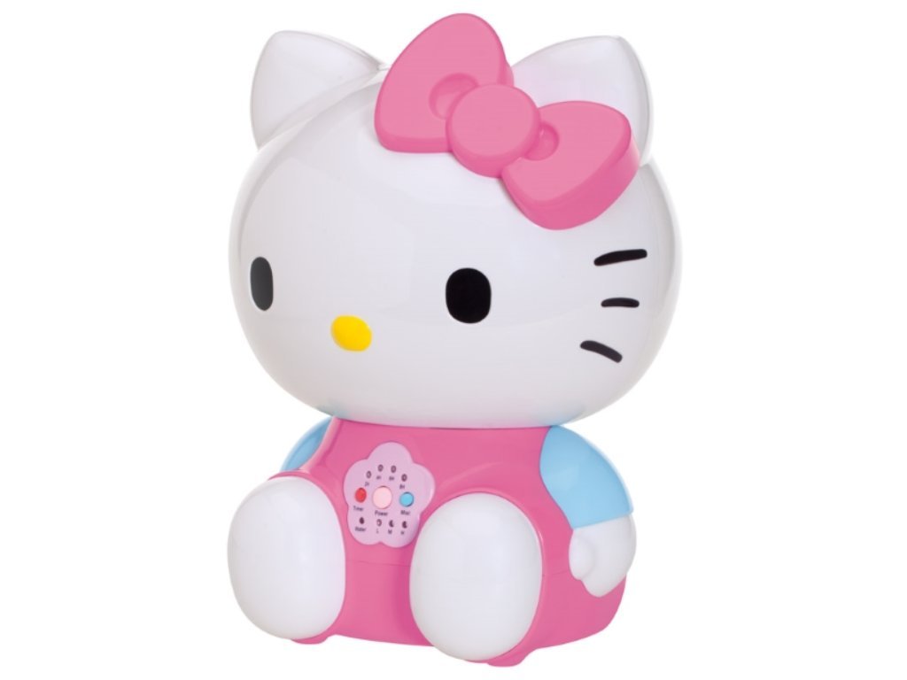Je vybavený nádržkou na 1,8 l. Ventilačný systém rozptyľuje vodu vo forme studenej pary a tým dodáva požadovanú vlhkosť. Má nastaviteľné množstvo pary. Zvlhčovač vzduchu Hello Kitty je schopný zvlhčovať viac ako 8 hodín, tým zaručuje deťom pokojný spánok po celú noc.